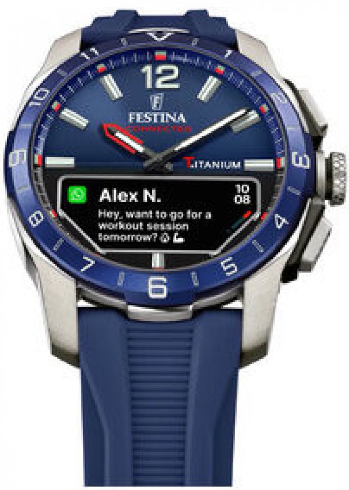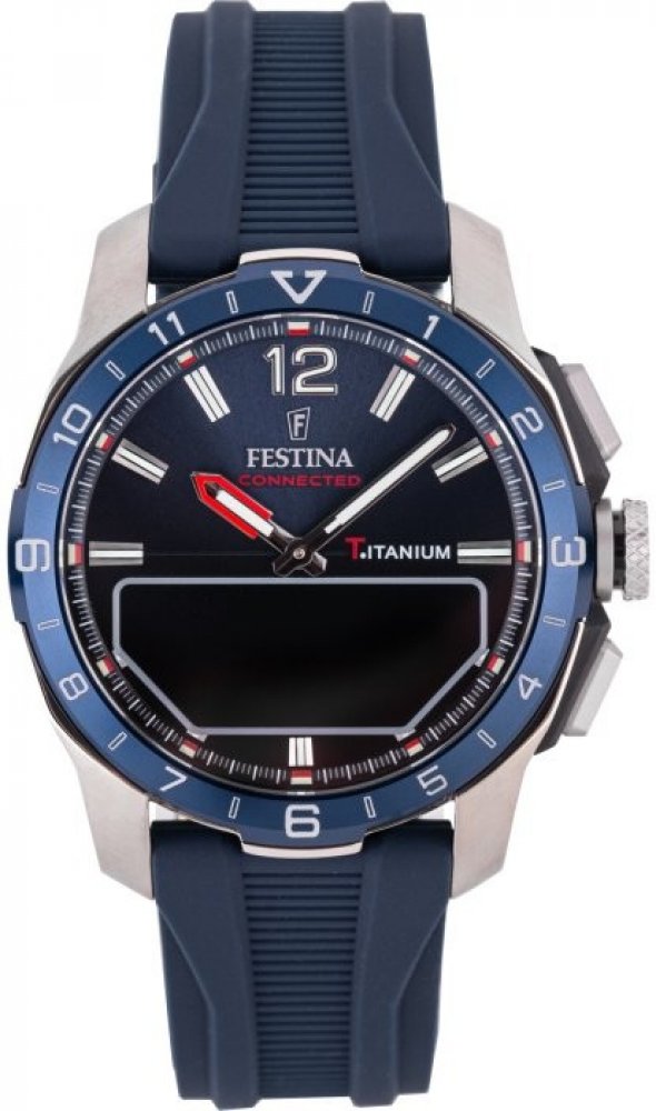 Festina kombinované silikon titan 30 m akumulátorové 87 g safírové sportovní pánské 2.28 cm bateriové - quartz bez osazení Connected kulaté modrá modrá trnová spona 2.3 cm pro běžné použití (30–50 m) s nenáročnou údržbou (quartz) s připojením k telefonu (Bluetooth/GPS) na ruku bez číslic střední 10 d 13.9 mm 23.0 mm 13.96 mm 44 mm