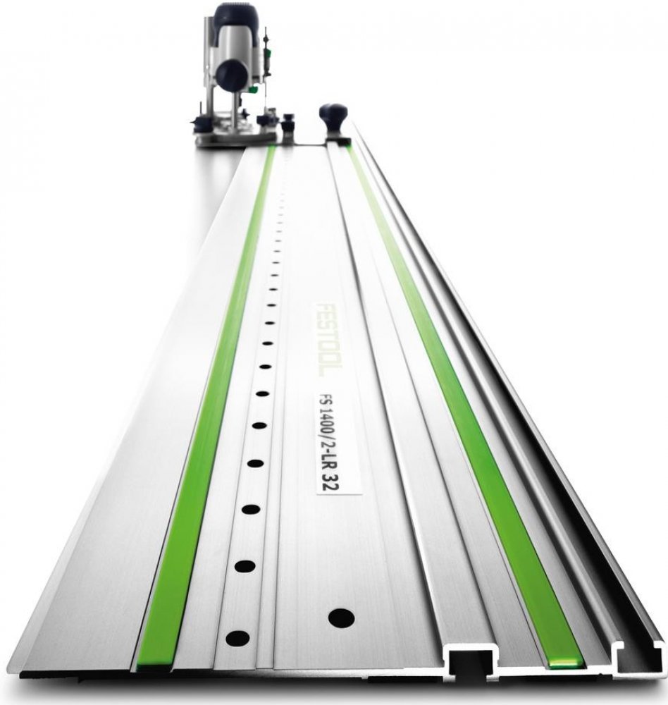 Vodicí lišta FS 1400/2-LR 32 Popis Vodicí lišta FS 1400/2-LR 32. Bezchybné vedení. Vynalezená a zdokonalená firmou Festool: vodicí lišta. Pro řezy a drážky, které vás přesvědčí svou přesností. S kluznou podložkou pro lehký chod, drážkou pro šroubové a pákové svěrky nebo zábranou pro řezy bez otřepů. Od roku 1964 průlom v otázce přesnosti a usnadnění práce. Při montáži nábytku je nepostradatelná vodicí lišta děrovaná v rastru – lze ji obdržet v délce 1 400 nebo 2 424 mm. Žádné jiné řešení neumožňuje tak snadno a rychle vytvářet řady otvorů pomocí horní frézky. Ať se jedná o systémy regálů nebo kování, jednodušeji to nejde. Jedinečné vlastnosti výrobku Rychleji k lepšímu výsledku: Pro přesné řady otvorů se vzdáleností 32 mm, přesné řezy s pilou a drážky s horní frézkou. Komfortní a pohodlná: Přesná a bezpečná práce v kombinaci s kombinovanou úhlovou jednotkou, obložením, dorazem proti zpětnému rázu a zábraně. Vyzkoušejte náš systém: Ideální doplněk k vodicí liště: multifunkční stůl MFT – mnohostranně použitelný v dílně a praktický na montáži. Podrobné informace o výrobku Běží jako po másle Kluzná vložka zabezpečuje klouzání nářadí po vodicí liště. Rychlé vytváření řad otvorů Horní frézka se vede jednoduše pomocí adaptéru pro frézování řady otvorů po řadě otvorů v 32mm rastru. Bezpečné omezení Doraz proti zpětnému rázu slouží jako doraz ohraničující vedení nebo zabezpečuje ponorné pily při zanoření do obrobku proti zpětným rázům. Přesné úhly Pomocí kombinované úhlové jednotky a vodicí lišty lze úhly přímo snímat a jednoduše přenášet na obrobek bez velkého počítání a zkoušení. Přesné drážky Pro přesné a rovné drážky se nabízí použití horní frézky s dorazem. Stačí rovnou nasadit na vodicí lištu a můžete frézovat. Vedení bez vůle Vodicí čelisti ponorných pil lze na vodicí liště nastavit bez použití nástroje. To umožňuje vedení nářadí bez vůle a přesné řezy. Sklouznutí vyloučeno Přilnavý potah bezpečně přidržuje lištu a současně chrání povrch. Pro ještě větší upevnění jsou k dispozici svěrky, rychloupínač FS-Rapid a dvojitý přísavkový držák GECKO. Nevznikají otřepy Gumová lišta přímo na nárysu chrání jako zábrana před vytrháváním třísek na hranách – i u úhlových řezů. Pohodlné spojování Pomocí spojky lze pohodlně spojit a vyrovnat dvě vodicí lišty. Nedochází k zahákávání Usměrňovač brání zaháknutí sací hadice a kabelu na konci vodicí lišty. Stěžejní oblasti použití Pro vytváření řad otvorů ve vzdálenosti 32 mm s příslušenstvím pro řady otvorů Bezpečné a dokonale rovné vedení nářadí Chránič proti otřepům pro čisté řezy bez otřepů Díky přilnavé podložce dobře polohovatelná i na hladkých materiálech Přídavná drážka pro upnutí příslušenství umožňuje další použití pro děrování v rastru 32 mm