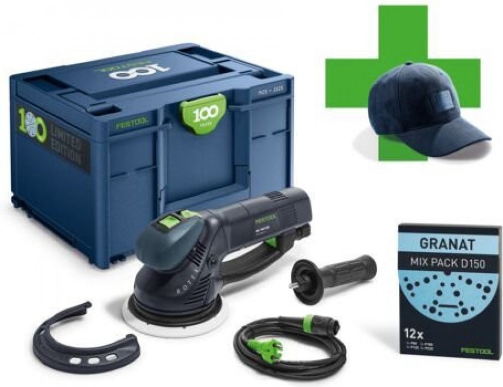 CASHBACK 2600 Kč pro Vás * přímo od značky FESTOOL ! Platí do 30.11.2025. Originální princip tři v jednom s koncepcí výkonného nářadí. • Troje nářadí v jednom: hrubé broušení, jemné broušení, leštění • Vyšší úběr díky rotačně excentrickému pohybu ROTEX • Troje nářadí v jednom: na hrubé broušení, jemné broušení a leštění. Díky tomu vznikají nízké pořizovací náklady a velká úspora času • Výměna brusných talířů FastFix, bez použití nástrojů • Ergonomicky optimální umístění rukojeti • Broušení blízko okrajů díky chrániči Festool PROTECTOR Stěžejní oblasti použití • Obroušení starých barev a laků • Broušení dřevěných materiálů • Renovační práce, např. broušení schodů • Broušení a leštění minerálních materiálů • Předbroušení a hrubé broušení tmelu • Leštění bez hologramů Technické údaje: příkon 720 W počet otáček - rotační pohyb ROTEX 320-660 min-1 počet otáček - excentrický pohyb 3300-6800 min-1 brusný zdvih 5 mm brusný talíř FastFix Ø 150 mm Ø přípojky pro odsávání prachu 27 mm Hmotnost 2,3 kg Rozsah dodávky: Brusný talíř ST-STF D150/MJ2-FX-W-HT Kabel plug it H05 RN-F-4 Chránič FESTOOL 150FX Granat Mix Pack D150, 3xP80, 3x P120, 3xP180, 3xP220 Systainer³ SYS3 M 237 Čepice golfová GC-FT4 100Y