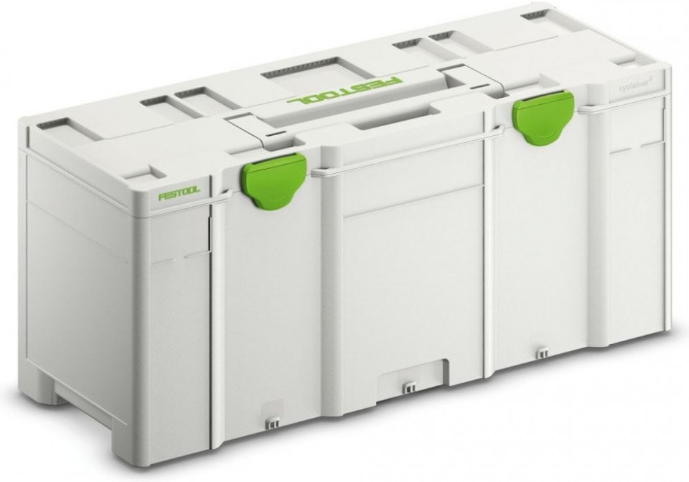 Festool Systainer³ SYS3 XXL 337 Popis Systainer³ spojuje dílnu a stavbu. Funkce Velikán s maximálním úložným prostorem. Vejde se toho sem hodně, všechno má své místo, vše je přehledně uspořádané a ihned po ruce: nářadí a elektrické nářadí, ruční nářadí, příslušenství, drobné díly a další pracovní prostředky. Jedinečné vlastnosti výrobku Prostorový zázrak. Vždy, když je zapotřebí hodně úložného prostoru, představuje optimální řešení Systainer³ XXL s objemem až 64 litrů. Jednoduše praktický: Nářadí, příslušenství a spotřební materiál jsou v Systaineru³ optimálně chráněné, přehledně uložené a snadno se transportují. Osvědčený ovládací prvek T-LOC umožňuje zavírání, otevírání a spojování jedním otočením. Vyzkoušejte náš systém: Systainery³ XXL lze spojovat navzájem, se všemi Systainery³ a Systainery T-LOC a dále pojízdným vozíkem. Jedinečné vlastnosti výrobku Prostorový zázrak. Vždy, když je zapotřebí hodně úložného prostoru, představuje optimální řešení Systainer³ XXL s objemem až 64 litrů. Jednoduše praktický: Nářadí, příslušenství a spotřební materiál jsou v Systaineru³ optimálně chráněné, přehledně uložené a snadno se transportují. Osvědčený ovládací prvek T-LOC umožňuje zavírání, otevírání a spojování jedním otočením. Vyzkoušejte náš systém: Systainery³ XXL lze spojovat navzájem, se všemi Systainery³ a Systainery T-LOC a dále pojízdným vozíkem. Podrobné informace o výrobku Bezpečné spojování Systainery³ XXL lze spojovat navzájem, se všemi Systainery³ a Systainery T-LOC a dále pojízdným vozíkem. Prohlubeň pro uchopení a madlo pro vytažení Ergonomická prohlubeň pro uchopení usnadňuje vytahování a přenášení Systaineru³ XXL. Profesionální vystupování Z dílny až na stavbu – vždy perfektně zorganizované. To udělá dojem i na vaše zákazníky. Ochrana ze všech stran Ať se jedná o prach, stříkající vodu nebo extrémní teplotní rozdíly – v Systaineru³ je všechno optimálně ochráněné. Bezpečná přeprava Systainer³ XXL lze pomocí upínacích popruhů bezpečně upevnit ve vozidle. Zabezpečení obsahu Díky integrované možnosti uzamknutí lze obsah Systaineru³ bezpečně uzavřít. Jasné označení Popisovací políčka pro umístění vizitek nebo etiket si lze jednoduše vytvořit podle individuálních potřeb a vytisknout na www.festool.com/systainer-labels. Stěžejní oblasti použití Lze spojovat navzájem, se všemi Systainery³ a Systainery T-LOC a dále pojízdným vozíkem Umožňují pořádek, přehled a profesionální vystupování