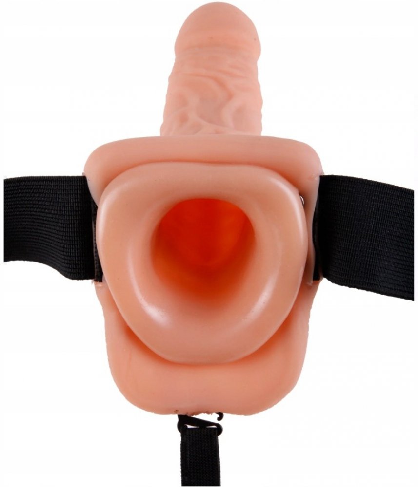 Dokonale tvarovaný pripínací umelý penis, zvnútra dutý, s pružnými ramienkami, ktoré dildo upevňujú v 3 bodoch.