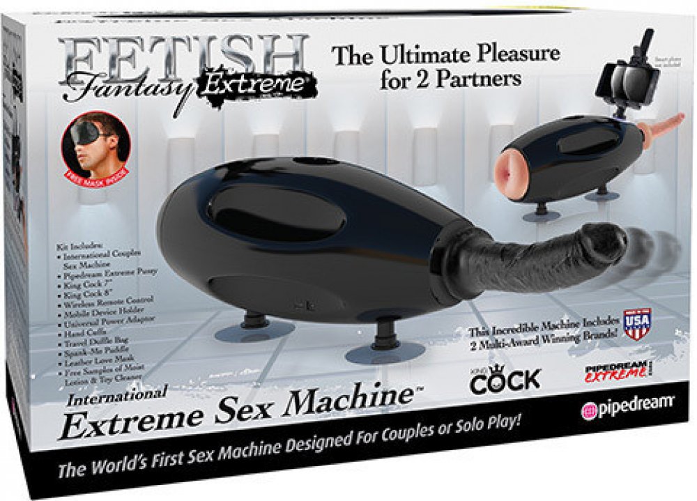 FF International Extreme Sex Machine- unikátní erotický stroj s dálkovým ovládáním. Z jedné strany šukací stroj, masturbátor z druhé. Z jedné strany je pohyblivá osa, na kterou je možné díky adaptéru připojit jeden z dvou různě velkých penisů. Potřebnou rychlost výsunů (až 240/min) si volíte sami dálkovým ovládáním. Na druhé straně je masturbátor ve tvaru análku z jemného a měkkého materiálu Fanta...
