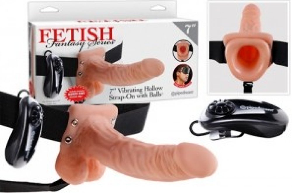 Ideální pro roleplay hry, připínací, dutý vibrátor, protože velká velikost a dráždivé potěšení už nejsou jen snem! Perfektně tvarovaný připínací umělý penis, s pružnými pásky, které vibrátor upevňují na třech místech. Penis je z příjemného materiálu, pevného na dotek, s tvarovaným, mírně vzhůru stojícím žaludem, silně žilkovaný povrch pro stimulaci a kulaté varlata. Vibrace se ovládá drátovým dálk...