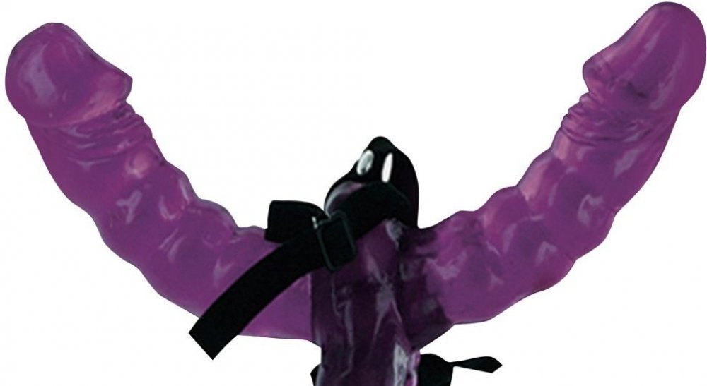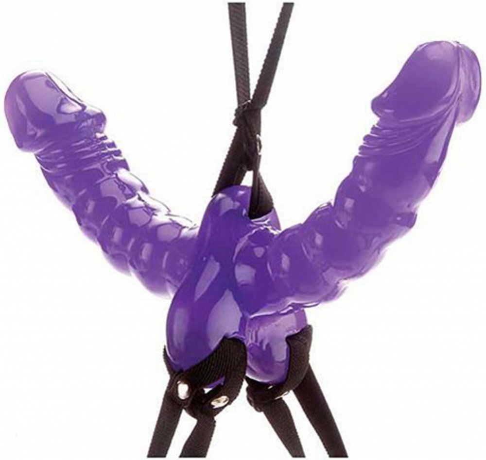 Strap‑on s texturovaným dvojitým dildem - fialový