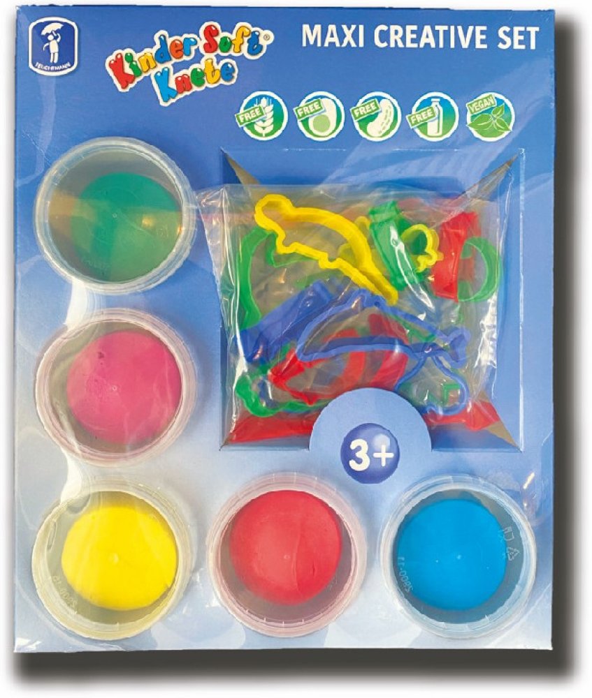 Velký kreativní set pro malé výtvarníky a výtvarnice obsahuje 5 kusů 80 g kelímků měkké tvrdnoucí modelovací hmoty v různých barvách, 15 vykrajovátek, 2 pracovní nástroje. Vhodné pro děti od 3 let. Dostupné od ledna 2022.