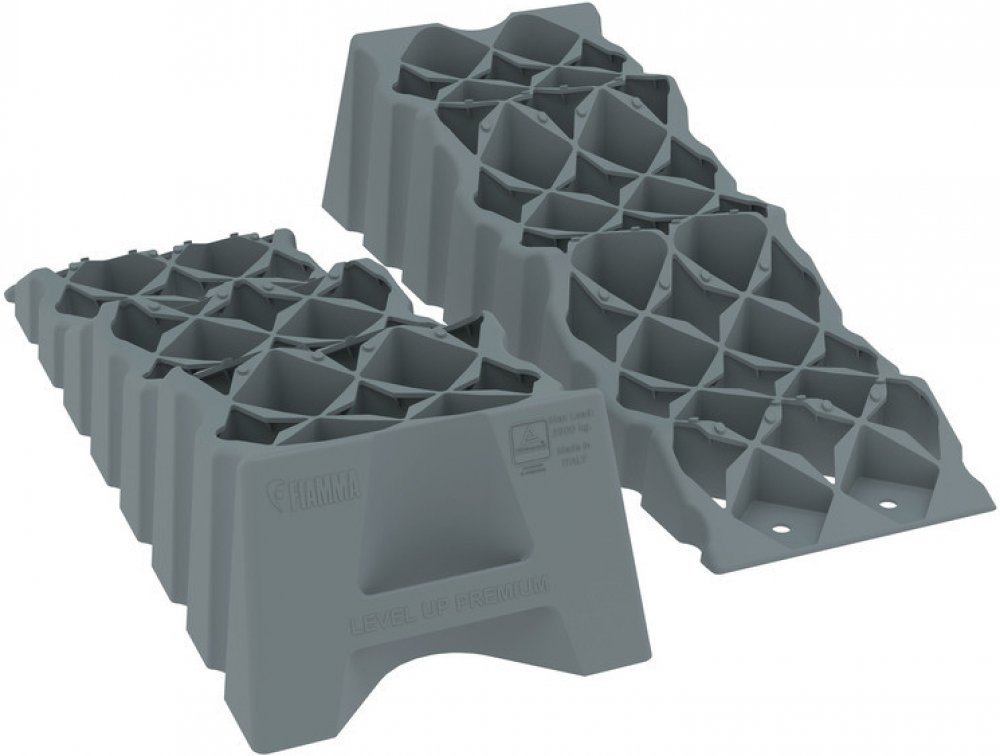 Vysoce odolné nájezdové klíny od společnosti Fiamma se třemi stupni ve výšce 7, 13 a 17 cm.