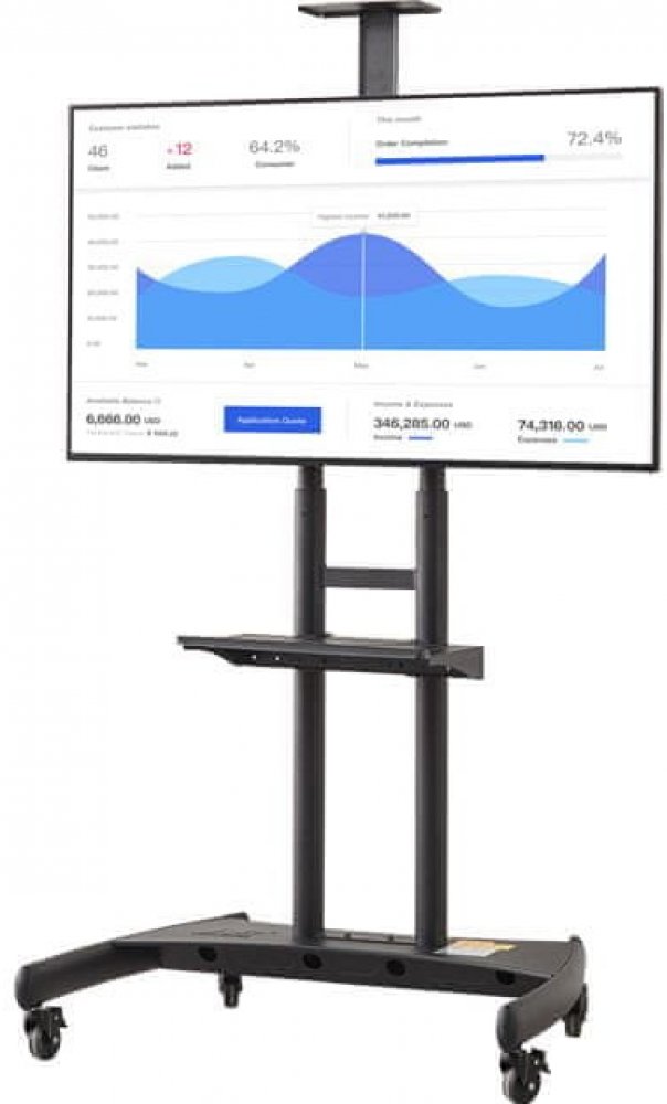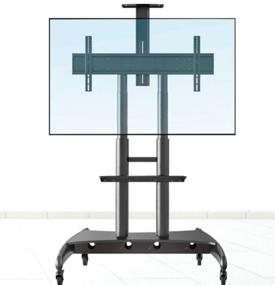 Mobilní výškově nastavitelný 135-165 cm stojan na Tv monitory 43" - 100", polička na příslušenství 506x320 mm a na kameru 256x125 mm, skryté vedení kabeláže, instalační materiál, pojezdová kolečka s aretací, VESA standardy 200x200 až 800x500, nosnost 90 kg, záruka 5 let, dopravné zdarma