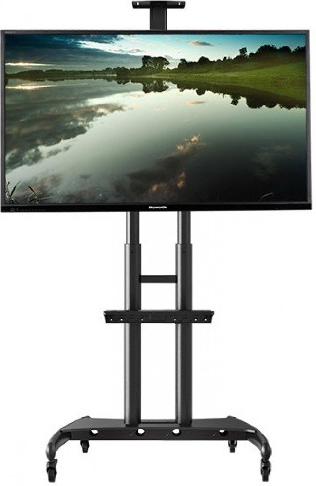 Televizní stojan určený na komerční účely v nejvyšší kvalitě a skvělém designu. Stojan je určen pro zavěšení televizorů s úhlopříčkami od 43" do 100", na typu tv nezáleží, je určen jak pro LED, LCD, plazmové, tak i dotykové nebo 3D televize. Dodáván je včetně širokého příslušenství, které Vám umožní jeho maximální využití při vynaložení minimálních prostředků - police na příslušenství, polička na kameru, web kameru nebo projektor, police na podstavci, systém vedení kabeláže.