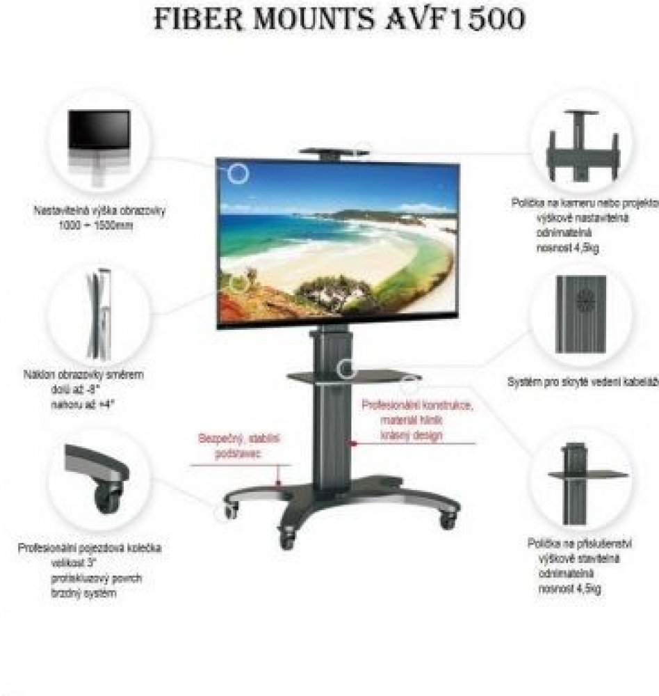 Velmi kvalitní televizní stojan s nastavitelnou výškou televizoru, odnímatelnou policí na příslušenství a poličkou na kameru nebo projektor, to vše v krásném designu. Stojan je vhodný jak pro komerční účely tak i pro využití v domácnostech. Vhodný je i pro náročnější uživatele.