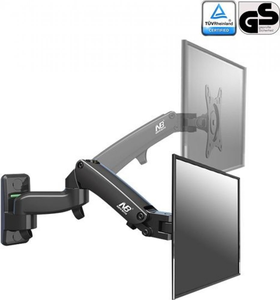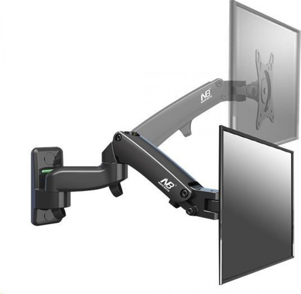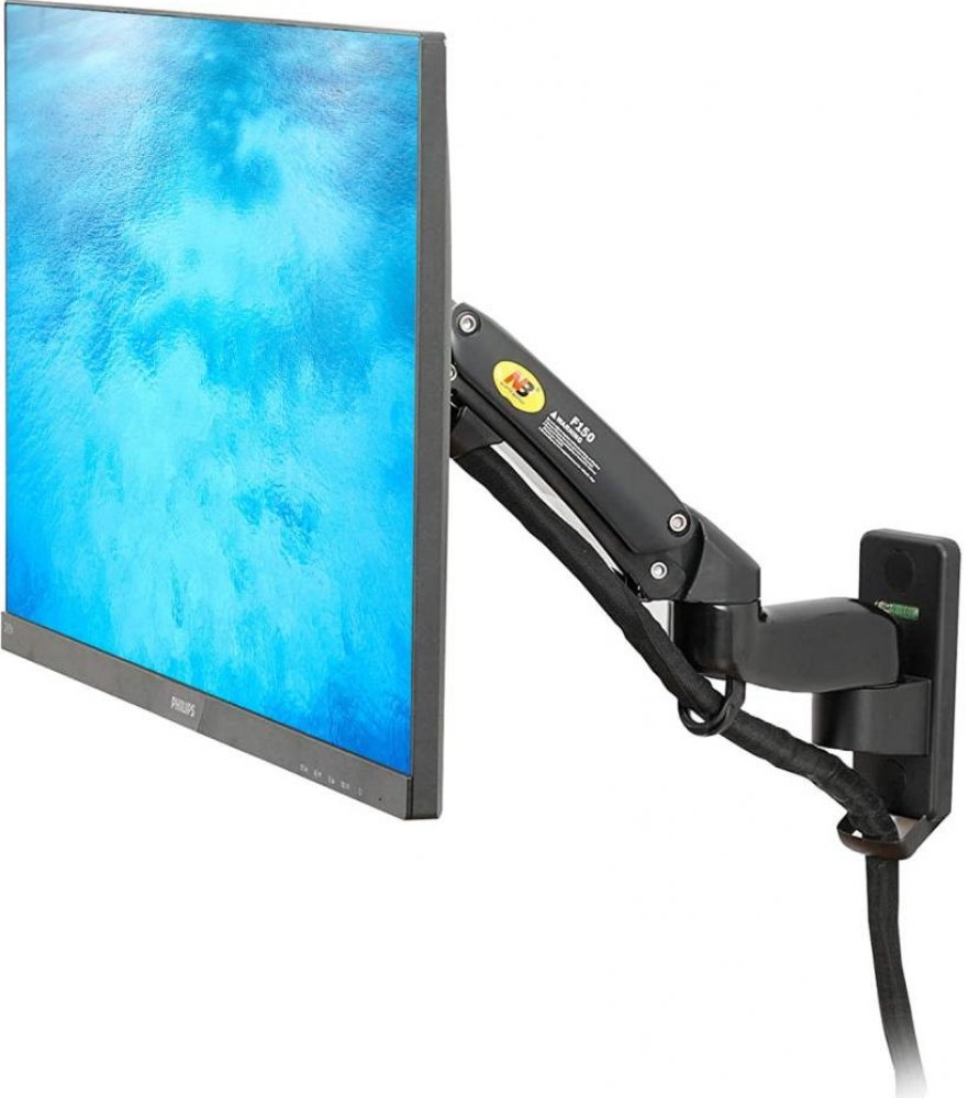 Inovovaný nástěnný držák F150 na monitor nebo televizi 15" - 43", otáčení do stran +90° / -90°, naklápění +85° / -30°, výškové polohování 195 mm, vzdálenost od zdi 100-445 mm, pivot 360°, VESA standardy 75x75 a 100x100, plynová pružina s nastavením nosnosti 3-12 kg, systém vedení kabeláže, instalační materiál