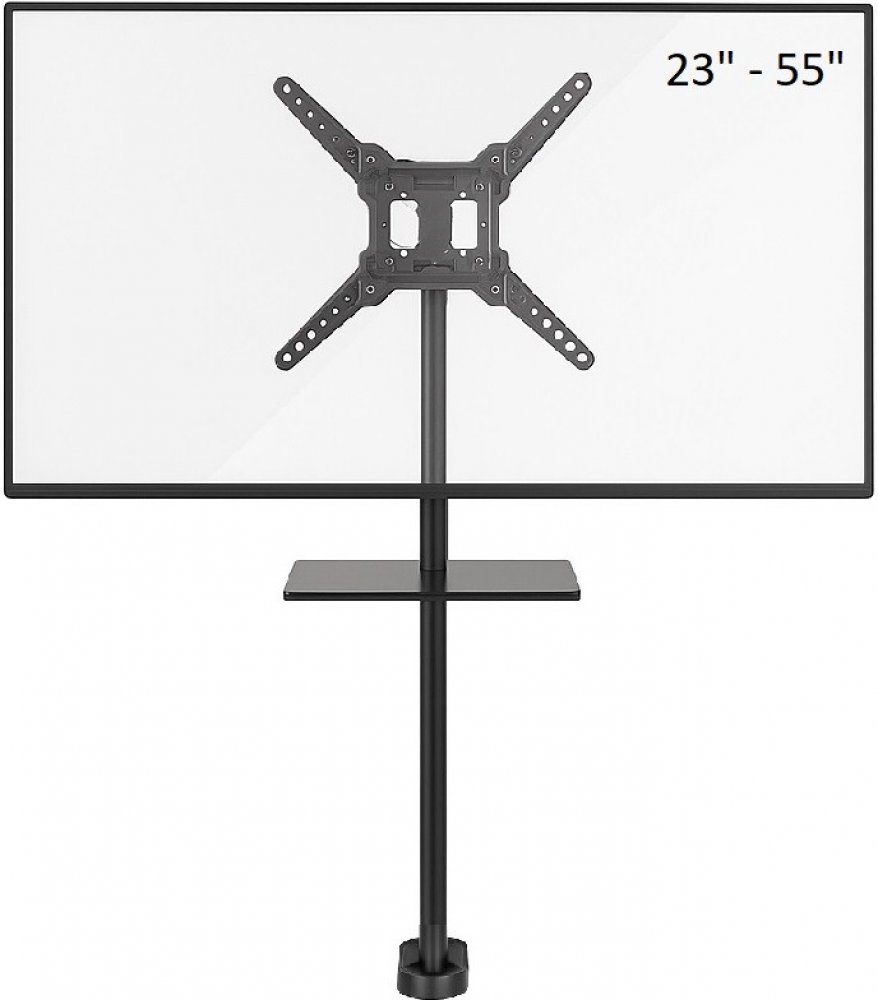 Prostorově nenáročný televizní stojan pro ukotvení do podlahy a poličkou na příslušenství ze dřeva MDF 380x190 mm, držákem na televizi, který podporuje VESA standardy 100x100 až 400x400, možnost naklápění Tv od +6° / -6°, nosnost 35 kg. Tv stojan FM97-1 je vhodný jak do domácností (obývací nebo dětský pokoj, ložnice), tak i do komerčních prostor (kanceláře, prodejny, stánky, recepce) protože je velmi prostorově nenáročný a díky ukotvení do podlahy poskytuje vysokou míru bezpečnosti. Ideální pro televize nebo monitory s úhlopříčkou 23" až 55". Barevné provedení černé. Záruka 5 let.