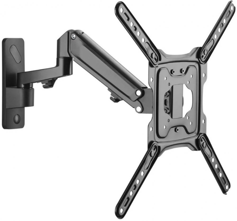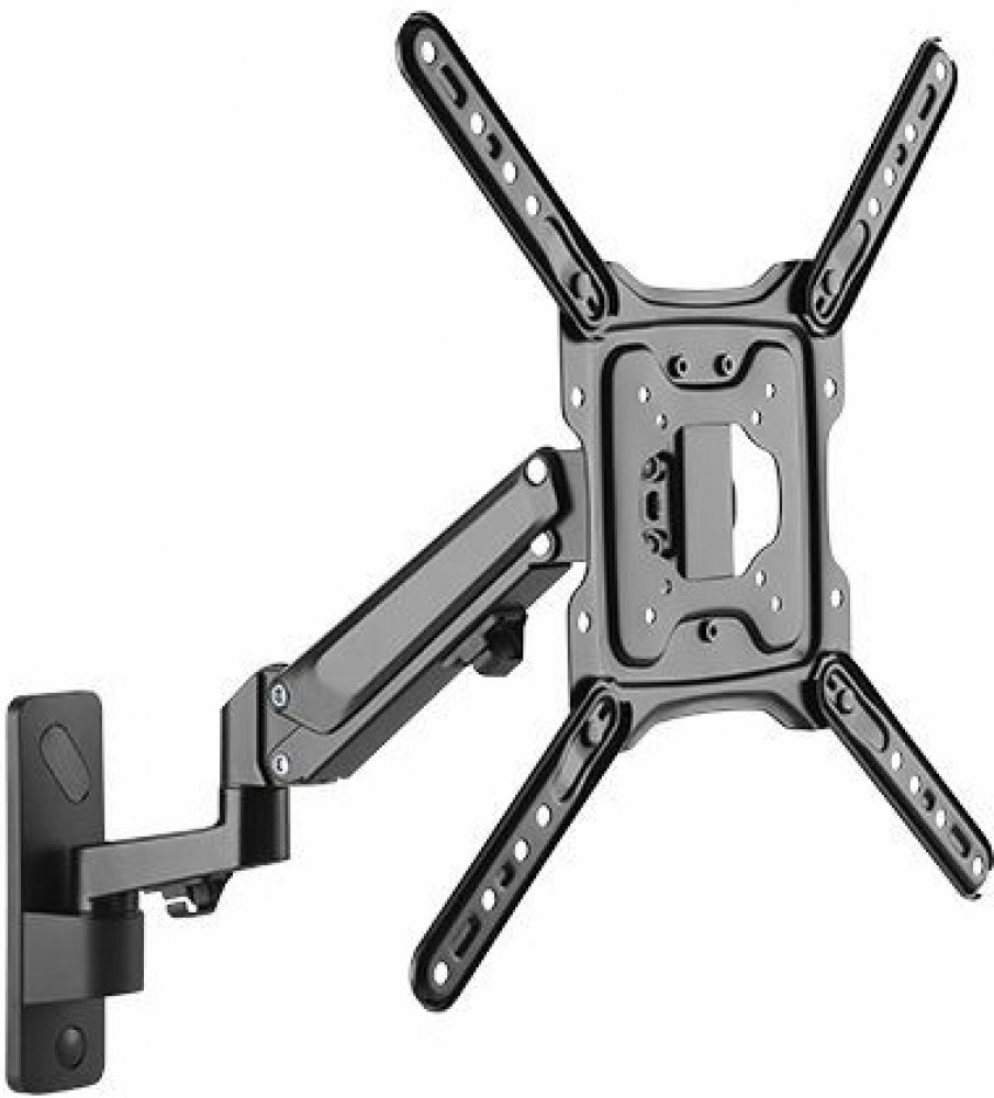 Nástěnný držák na Tv a monitory 32" - 65", plynová pružina pro výškové polohování 236 mm, otáčení +90° / -90°, naklápění +5° / -15°, vzdálenost od zdi 76-466 mm, korekce roviny +3° / -3°, úchyty kabeláže, instalační materiál, VESA 75x75 až 400x400, nosnost 23 kg (minimální hmotnost Tv 5 kg, maximální hmotnost Tv 23 kg), záruka 3 roky