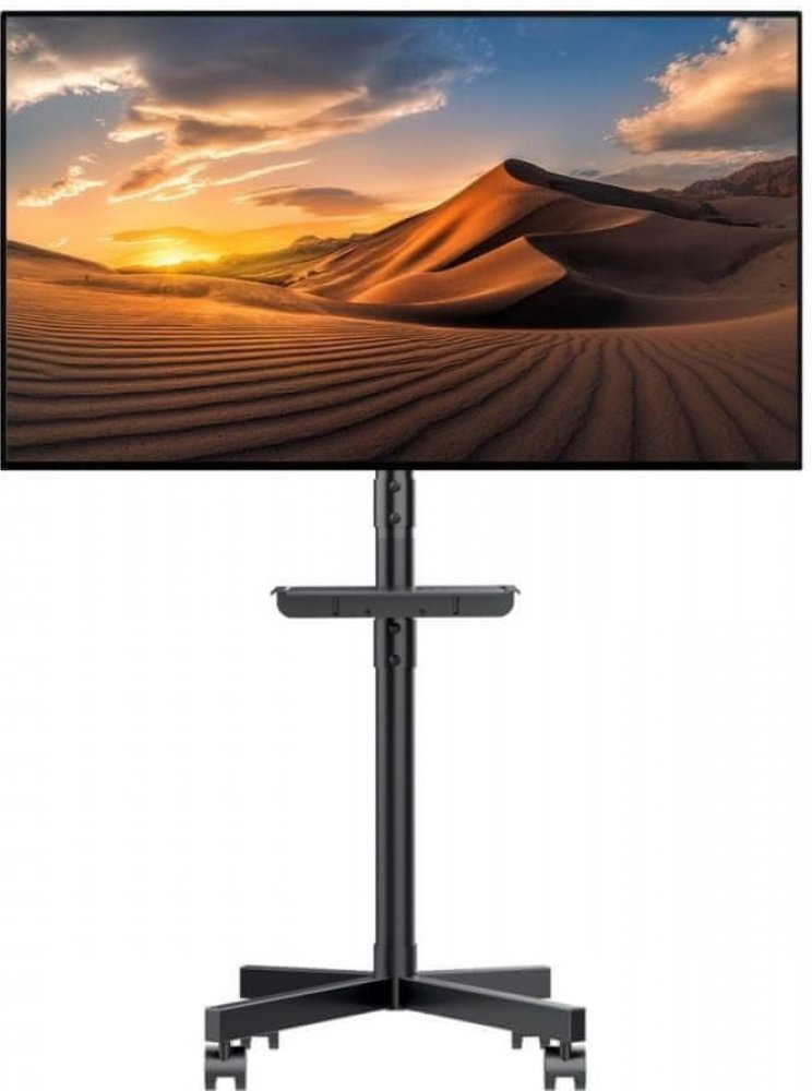 Televizní stojan vhodný do kanceláří, pokojů nebo na prezentace. Ideální pro nenáročné uživatele s požadavkem mobility a estetiky. Ideální na televize i monitory 23" až 55", podpora VESA standardů 75x75 až 400x400 a s hmotností do 25 kg. Součástí stojanu je polička na příslušenství 300x200 mm a instalační materiál. Záruka 3 roky.