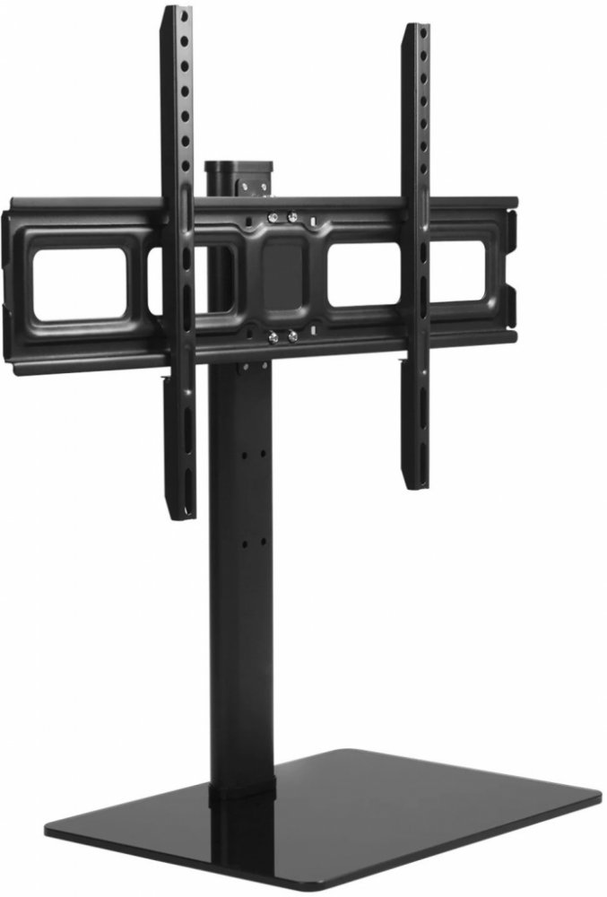 Univerzální stolní držák na TV 32" - 75", nastavitelná výška 568 / 645 / 723 mm, otáčení Tv do stran +35° / -35°, skleněná podstava 410x302 mm, instalační materiál, VESA standardy 75x75 až 600x400, nosnost 40kg