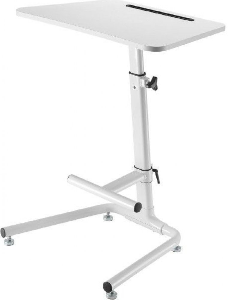 Velmi pěkný, stabilní a spolehlivý stolek na notebook, laptop nebo iPad. Snadné výškové polohování dle Vaší potřeby, možnost kdykoliv změnit práci vsedě na práci vestoje, podnož s výškovým nastavením. Velmi pěkné provedení v bílé barvě. Stolek můžete využít i jako pracovní stanici, prodejní pultík, vhodný taktéž na prezentace nebo výstavy, stánky atp.