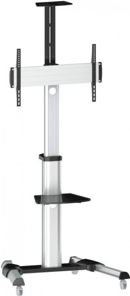 Profesionální stojan na LCD, LED, 3D, smart, plazmové, dotykové nebo prohnuté televizory s úhlopříčkou 43 až 100 palců. Stojan je plně nastavitelný: výškové polohování, náklon Tv, funkce PIVOT pro možnost otočení Tv z horizontální do vertikální polohy, mobilní, kolečka osazeny brzdou. Bohaté příslušenství: v balení se stojanem naleznete držák na Tv, poličku na příslušenství a poličku na kameru nebo projektor. Konstrukce stojanu je uzpůsobena pro skryté vedení veškeré kabeláže. Velmi pěkný, moderní design který vynikne a zaujme. Stojan má bezpečnou stabilní základnu o rozměrech 828x700mm, která je osazena pojezdovými kolečky s brzdou. Celková nosnost stojanu je 50kg. Konstrukce hliníková, barevné provedení dle vyobrazení stříbrné. Ideální stojan na konference, na výstavy a prezentace, do firemních prostor a kanceláří, výrobních prostorů ale i domácností, ordinací a hotelů.
