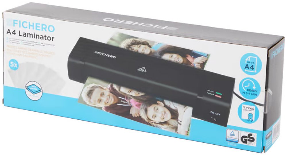 Laminátor Fichero velmi snadno používá a je připraven k použití: