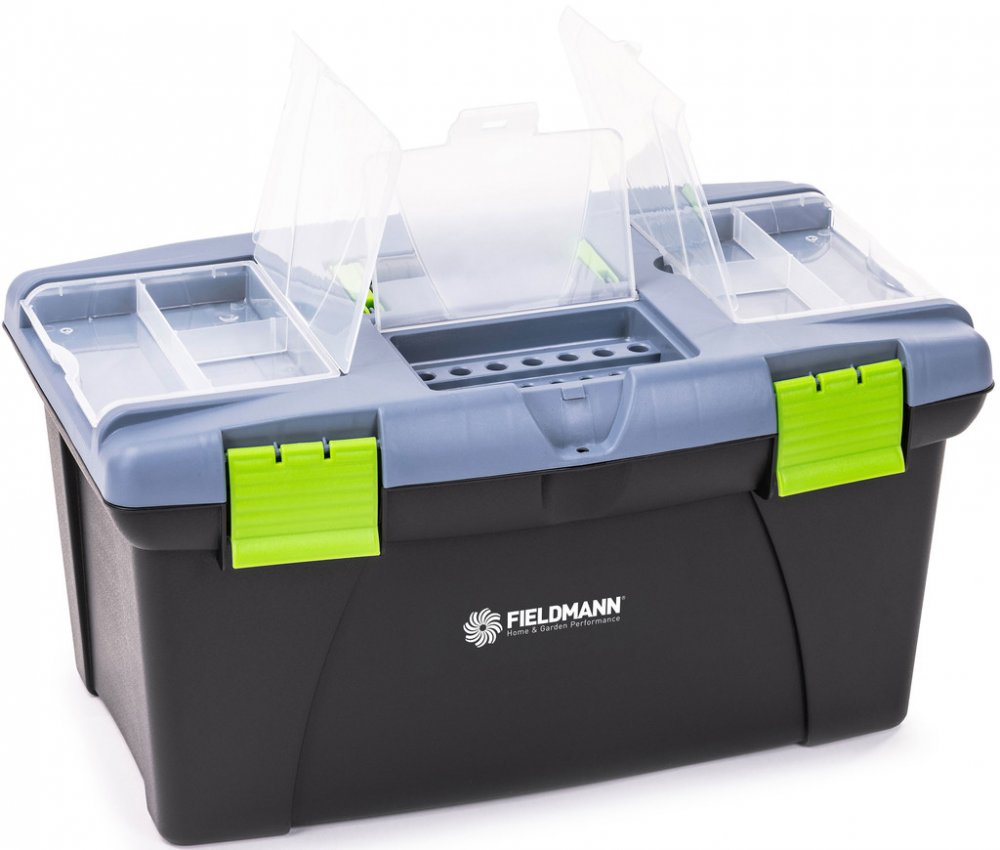 Uspořádejte si nářadí s praktickým úložným boxem FDN 4120. Horní část boxu obsahuje průhledný organizér, který umožňuje rychlý přístup k drobnostem, jako jsou vruty, bity nebo hmoždinky. Další vyjímatelný vnitřní organizér vám pomůže udržet věci přehledně uklizené.S rozměry 500 × 300 × 280 mm nabízí box Fieldmann dostatek prostoru pro všechny potřebné nástroje a zajistí jejich bezpečné uskladnění....