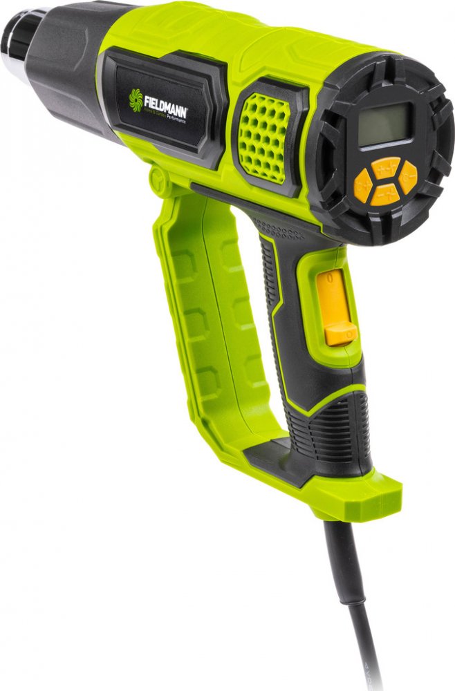 Horkovzdušná pistole Fieldmann FDHP 202001-E je nepostradatelným pomocníkem pro každého domácího kutila i zkušeného profesionála. S ohromujícím výkonem 2 000 W si hravě poradí i s těmi nejnáročnějšími úkoly. Potřebujete odstranit starý nátěr z oken či plotu, rychle rozmrazit zamrzlé trubky, spájet plastový spoj nebo ohnout kovové díly? Žádný problém. Na přehledném LCD displeji vše snadno nastavíte k vaší maximální spokojenosti. Na výběr máte nízkou teplotu 60 °C nebo úctyhodné rozmezí 60–600 °C. A pokud jde o přizpůsobení proudění teplého vzduchu, můžete zvolit intenzivní výkon 500 l/min nebo nastavení od 300 do 500 l/min.