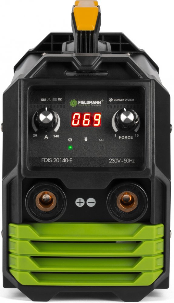 Invertní svářečka od renomovaného výrobce FIELDMANN zajistí všechnu práci pro snadné dělení a homogenní spájení oceli, nerezové oceli, pozinkovaného kovu a slitiny. Tento stroj je dodáván včetně praktického svářecího štítu, svářecího kabelu a též uzemňovacího kabelu. Stroj je kompatibilní se všemi běžně dostupnými ocelovými, litinovými a bazickými tyčovými elektrody.Součástí stroje je plynulá regulace svářecího proudu, kdy maximální svářecí proud činí 140 A při maximálním průměru elektrody 3,2mm