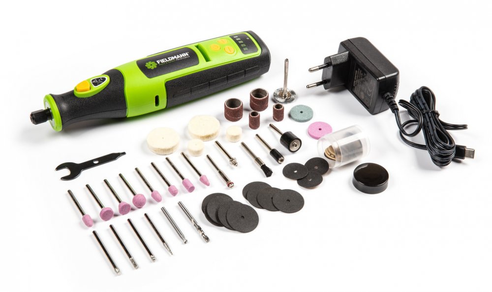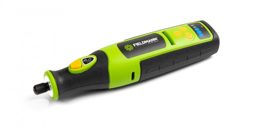 25000 ot/min 0.3 kg Fieldmann přímé 3.2 mm hobby akumulátorové pro jemné dokončování a leštění pro mobilní úlohy upínací kleštiny kartáčový 146 × 31 × 31 mm se středním komfortem