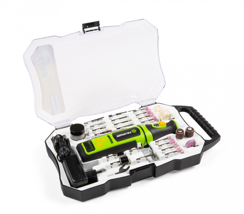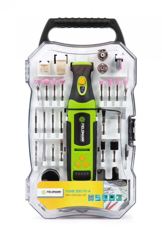 Skvěle propracovaná modelářská bruska ověřené značky FIELDMANN je všestranný univerzální nástroj pro domácí kutily, drobné řemeslníky i hobby nadšence. Jedná se o mini přímou brusku s regulací otáček. O dostatečný výkon se postará Li-Ion 7,2 V / 1,3 Ah akumulátor. Otáčky je možné regulovat v rozmezí 5 000 – 25 000 otáček za minutu. Je vhodná pro opracování jak měkkých, tak i tvrdých materiálů. Skv...
