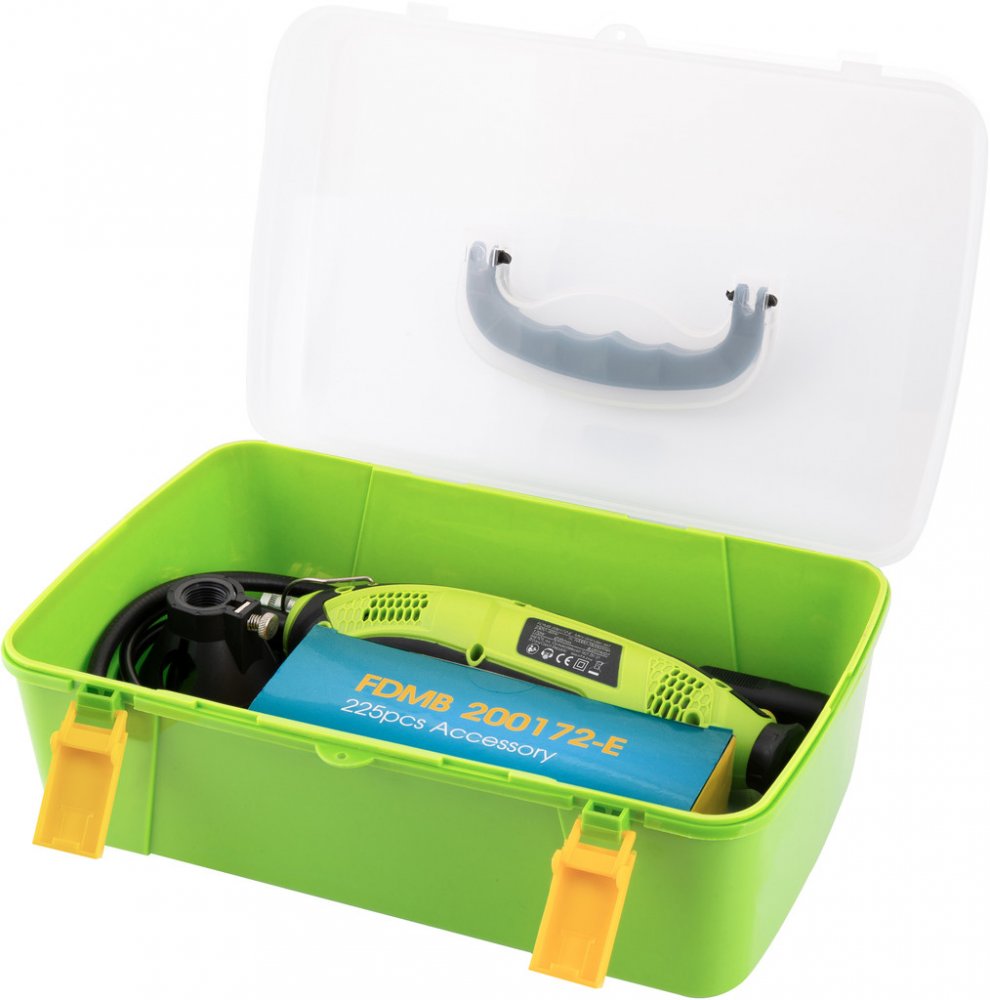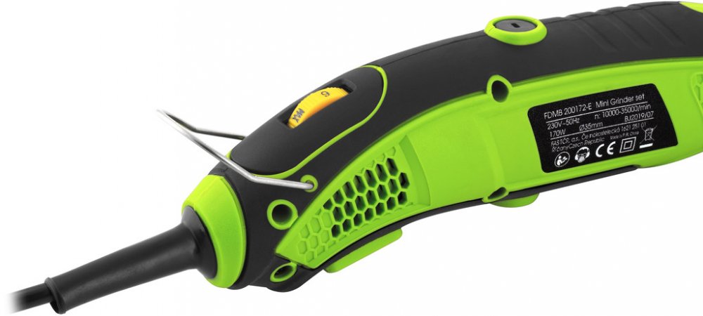 Malá bruska se sadou nástavců, určená k jemným gravírovacím pracím, preciznímu opracování dřeva, kovu či plastu a práci ve stísněných prostorech
