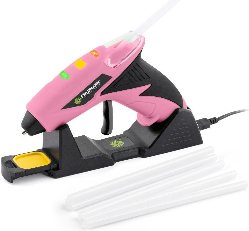Lepicí aku tavná pistole od renomované značky FIELDMANN je určená k roztavení a nanášení tavného lepidla za účelem slepení plastu, dřeva, korku, textilie, kartonu i keramiky. Plynulé a přesné dávkování roztaveného lepidla umožňuje citlivá páčka mechanického posuvu.