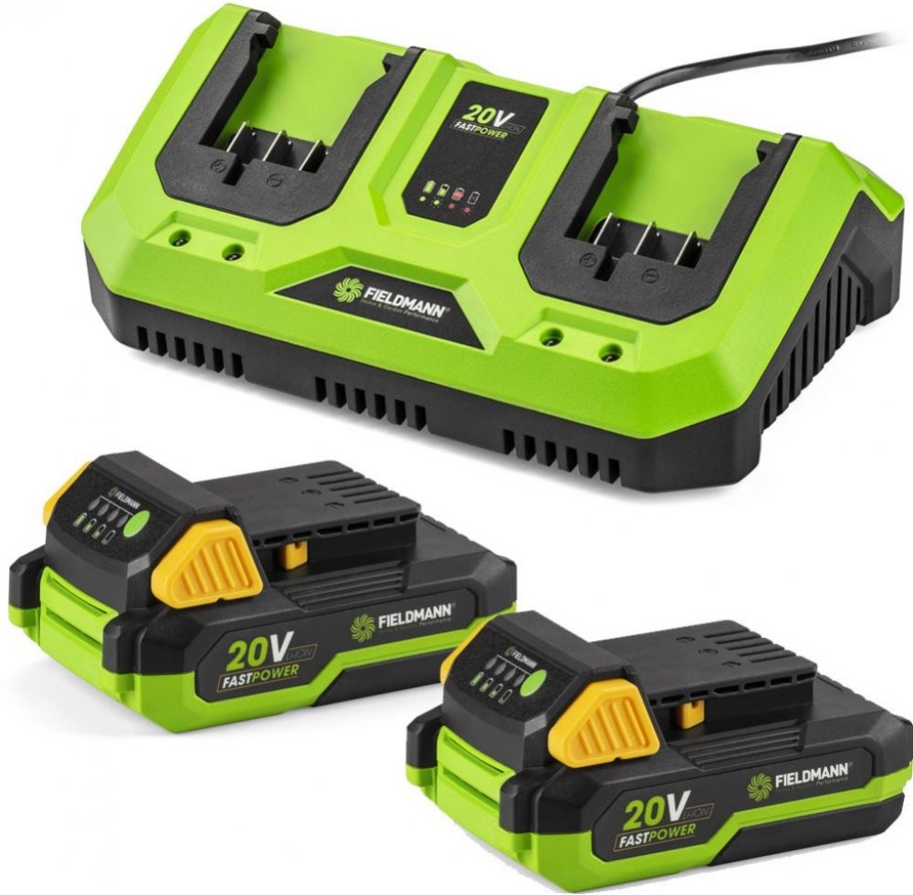 Li-Ion duální rychlonabíjecí stanice renomované značky FIELDMANN představuje opravdovou špičku ve své komoditě. Je kompatibilní se všemi stroji z aku řady FAST POWER 20V. Pro tento druh nabíječek je typický elektronický monitoring stavu nabití díky kterému ihned vidíte, zda nabíjení probíhá bez problému díky LED indikátoru. Největší výhodou této nabíječky je možnost nabíjení 2 baterií současně.