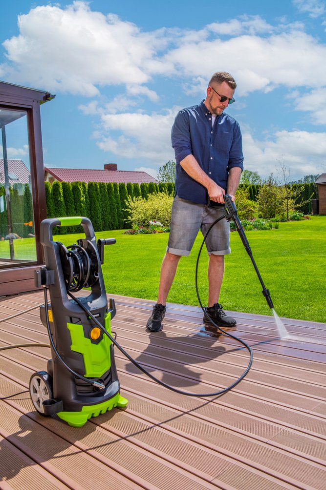 Vysokotlaká myčka FIELDMANN FD 202205-E. Je skvělý pomocník pro čištění teras, dlažeb, dvora, automobilů nebo zahradního nábytku. Stříkací pistole má variabilní trysku a čištění s ní půjde jednoduše a rychle. Myčka má zabudovaná plastová kolečka pro snadnější transport.