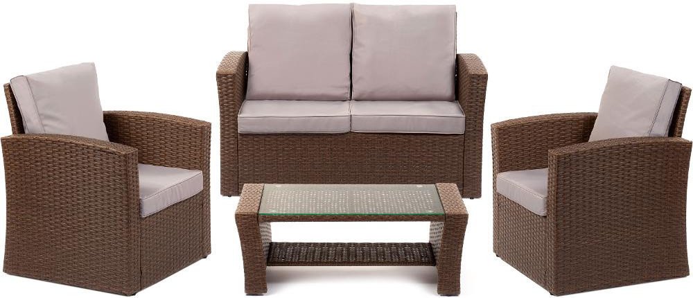 Díky svému elegantnímu provedení neudělá nábytek značky FIELDMAN ostudu žádnému venkovnímu, ale ani vnitřnímu prostoru. Set se skládá z konferenčního stolku se skleněnou deskou, dvousedačky a dvou křesel. Jeho součástí jsou i polštáře s kvalitními voděodolnými potahy, odpadá tak tedy starost se sháněním podsedáků.