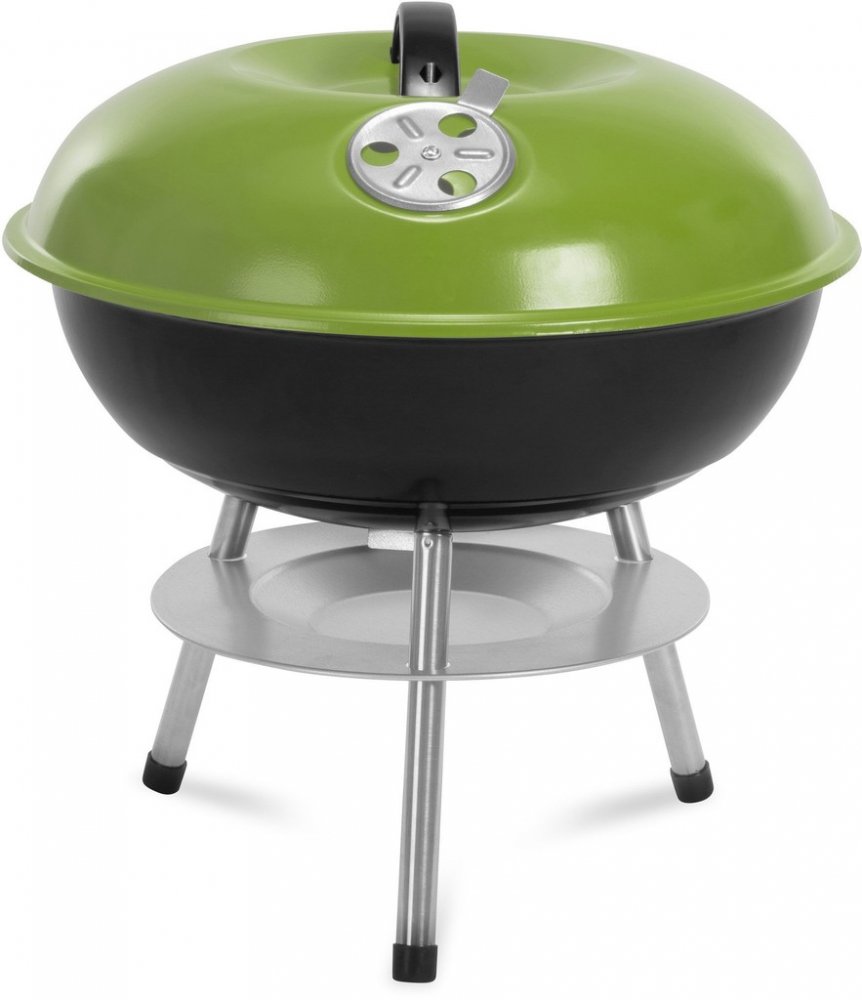 Stolní gril na uhlí s pochromovaným grilovacím roštem obsahuje praktický kryt pro zakrytí grilu v zeleném provedení. Gril se hodí nejen na stůl na zahradě, na terase.