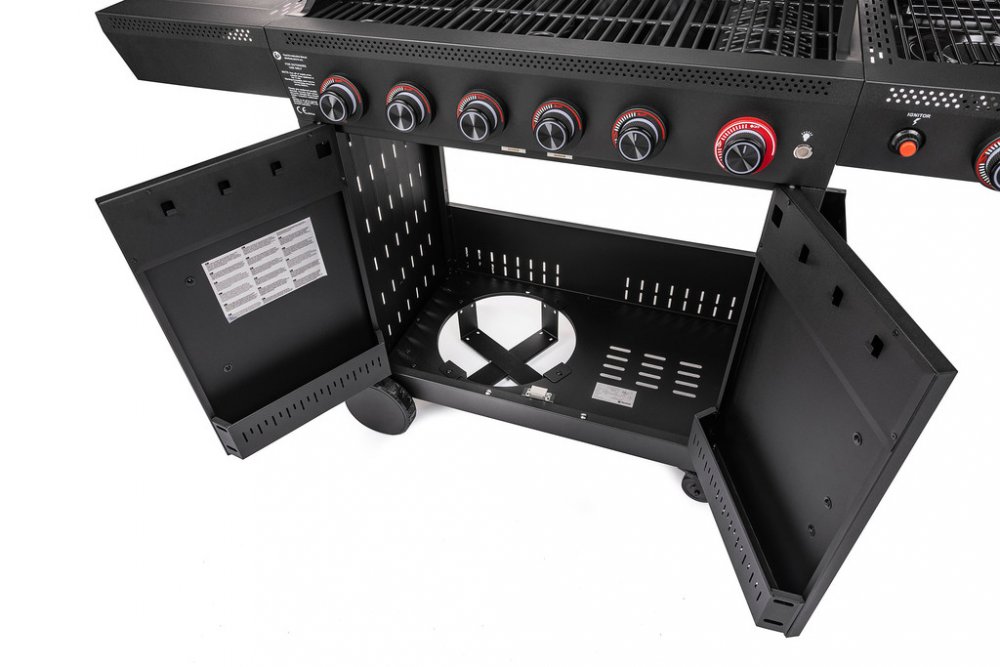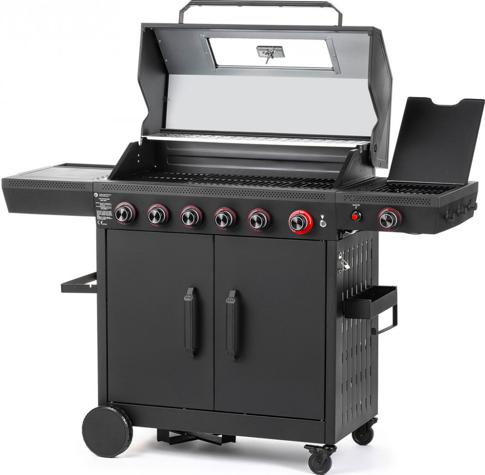 Ať už plánujete rodinnou oslavu, sousedskou grilovačku nebo jen klidné víkendové odpoledne na zahradě, plynový gril FZG 3030 zvládne vše s přehledem. Pět hlavních hořáků spolu s extra výkonným SEAR hořákem zajistí rovnoměrné a intenzivní teplo, díky kterému bude maso krásně propečené a šťavnaté. Grilovací plocha o rozměrech 82 × 42 cm poskytne dostatek místa i pro větší objem jídla - bez toho, abyste museli cokoli dělat na etapy. Podsvícené ovládací knoflíky vám umožní mít všechno pod kontrolou i ve večerních hodinách a s praktickými háčky a odkládacími plochami budete mít veškeré náčiní neustále po ruce.Konstrukce grilu je promyšlená do posledního detailu. Skříňka ukrývající plynovou lahev se pohodlně otevírá/zavírá. Skříňka je vybavena poličkou na koření a háčky na grilovací nářadí. Víko s průhledným okénkem vám umožní sledovat, co se s jídlem děje, aniž by unikalo teplo. Vychytávky jako prostor na koření, držák pytle na odpadky či otvírák na pivo ocení každý, kdo už někdy griloval s rukama od masa a věčně něco hledal.