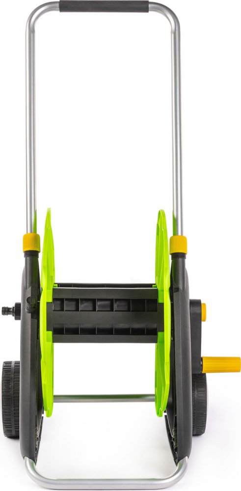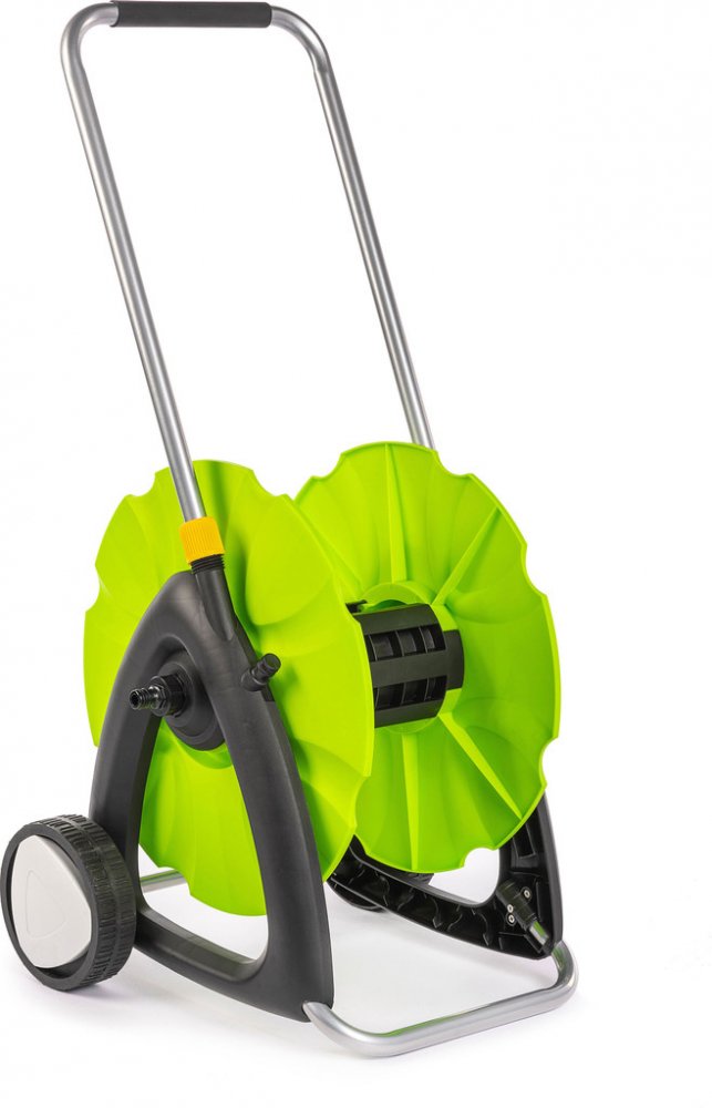 Buben tohoto navijáku je vyroben z pevného plastu, odolného proti UV záření. Díky opěrce je buben stabilní, hadici tak můžete rychle navinout i odvinout. Navinutou hadici snadno uskladníte při minimální potřebě místa. Naviják je vybaven integrovanou „protikapací“ koncovkou zabraňující vytékání či odkapávání zbytkové vody během přepravy nebo uskladnění. Koncovka zároveň zajišťuje pohodlnější manipulaci s navijákem, protože konec hadice na něm pevně drží.