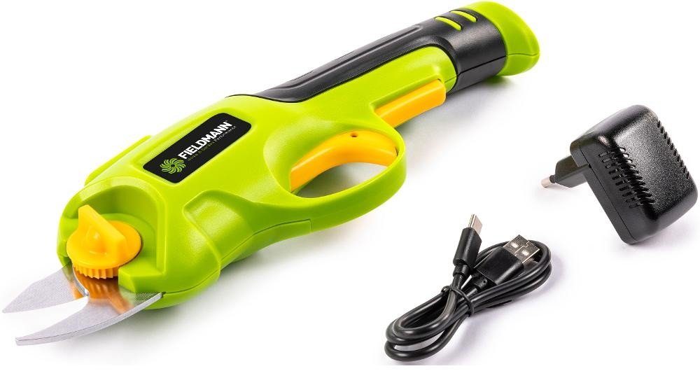 Aku nůžky na větve FIELDMANN jsou poháněné baterií o kapacitě 1,5 Ah a poskytují dlouhotrvající výkon pro práci na zahradě.