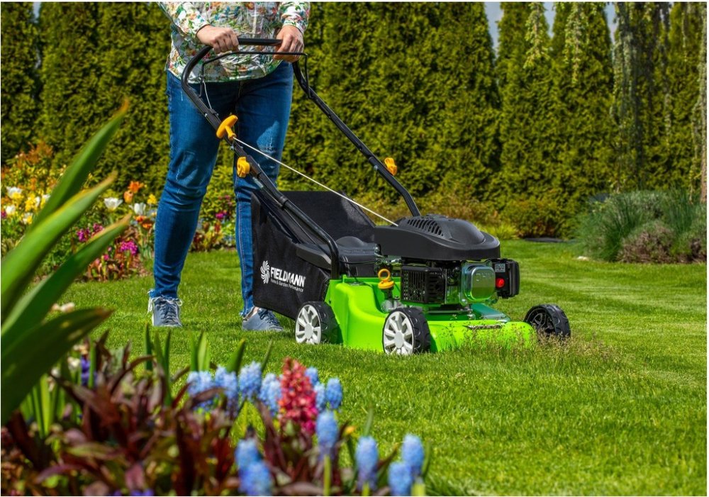 Fieldmann 1300 W 40 cm 94 dB plastové 19 kg bez pojezdu benzínové rotační 40 l 650 m2 1300 W čtyřtaktní 3000 ot/min 55 mm s látkovým košem 79 cc 1.0 L 3