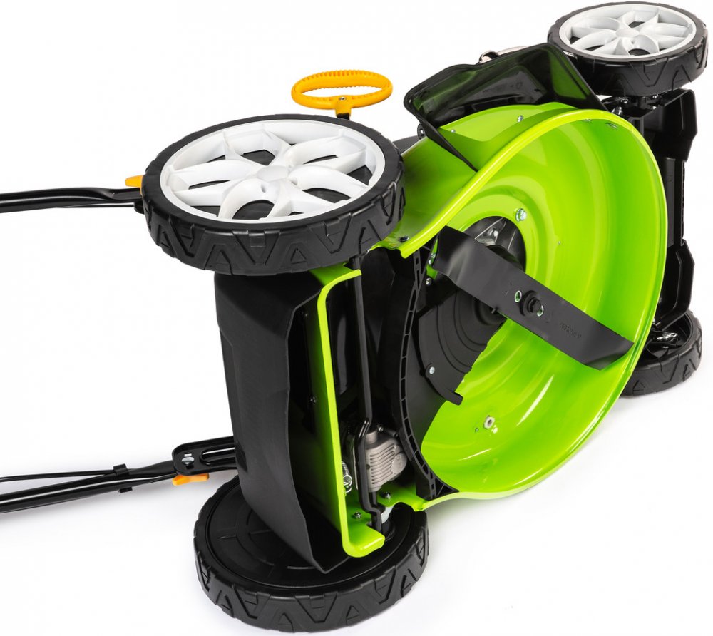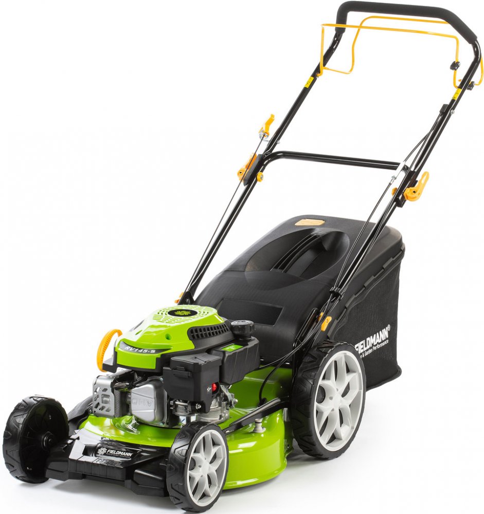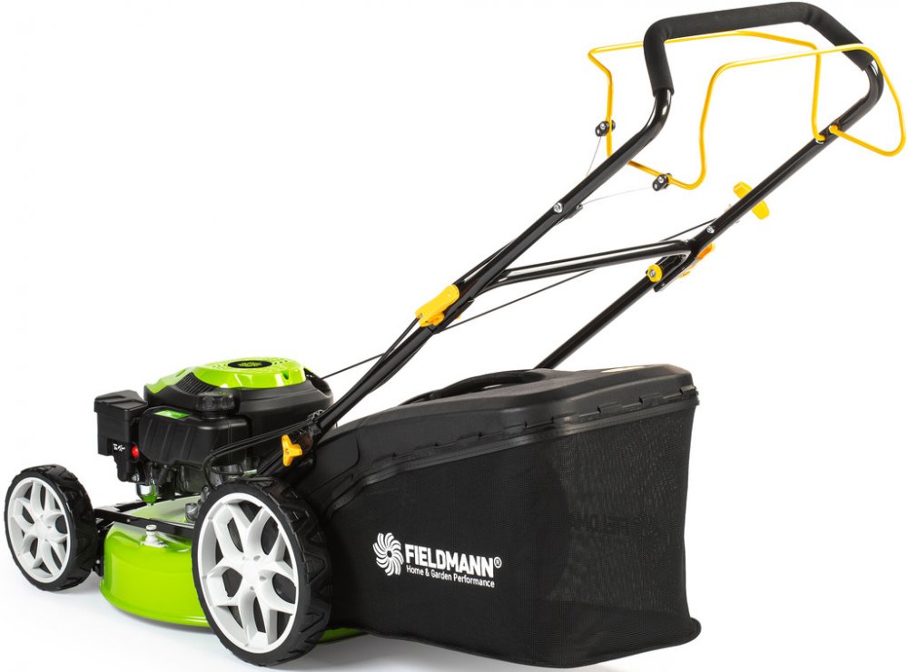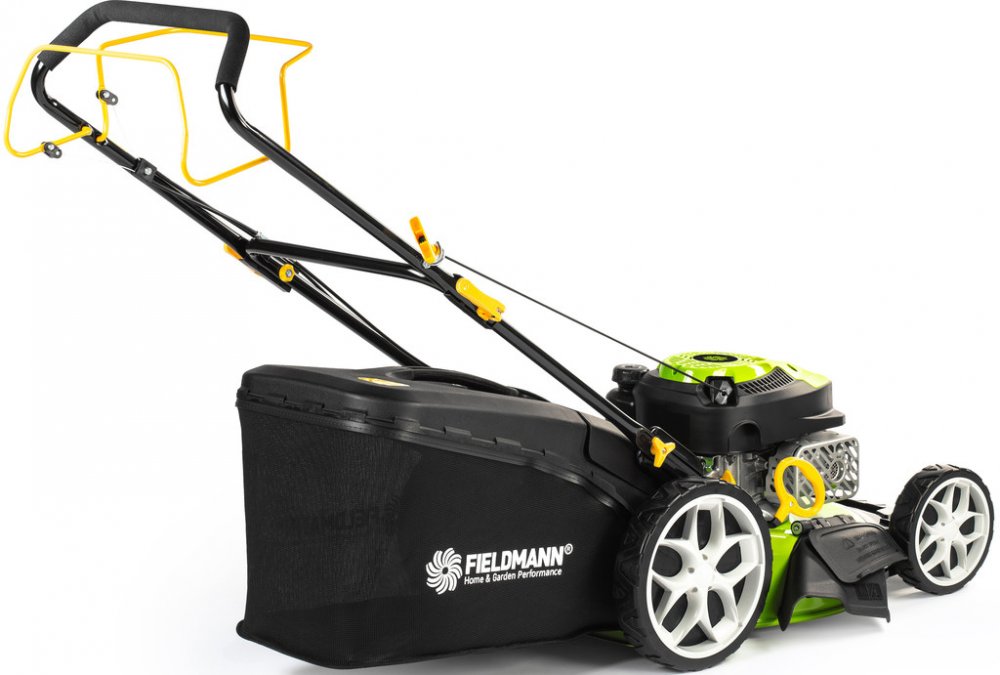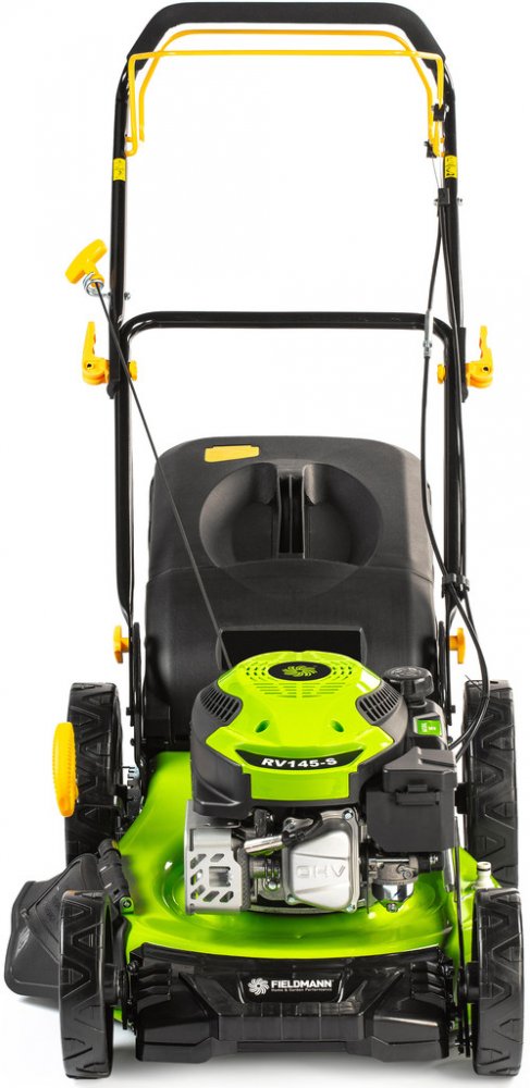 FZR 4612-144B Čtyřtaktní motor RATO RV145-S, 144 cm³, 2.2 kW Šířka záběru 46 cm Ocelové šasi Systém sečení 4 v 1 6 pozic nastavení výšky Doporučená plocha sečení 1000 m2 Popis Benzínovou sekačku Fieldmann FZR 4612-144B oceníte především na zahradách a pozemcích, které nejsou připojené k elektrické síti. Jednoduše se ovládá a odpadají tak starosti s hledáním zásuvky, omezenou mobilitou nebo dokonce přeseknutím kabelu. Čtyřtaktní motor o výkonu 2,2 kW a šířka záběru 46 cm se nejlépe uplatní na zahradách o velikosti do 1000 m². V náročnějším terénu vám zajisté přijde vhod i funkce pojezdu. Podle vašich preferencí a potřeb trávníku si můžete pomocí centrální páky nastavit výšku sečení až na 6 různých pozic v rozsahu 25 - 75 mm. Sběrný koš o obsahu 60 l je vybavený ukazatelem zaplnění a upozorní vás, kdy je zapotřebí nádobu vyprázdnit. To však není jediná možnost, jak naložit s posekanou trávou. Díky systému 4v1 si můžete vybrat, zda chcete využít sběrného koše, použijete boční nebo zadní odhoz či zvolíte variantu mulčování. S hmotností 27 kg je sekačka dostatečně robustní pro náročné použití, ale zároveň i překvapivě snadno ovladatelná - kola uložená na kuličkových ložiscích zajišťují jednoduchou manipulaci po celém trávníku. Polohovatelné madlo s měkčeným potahem pak poskytuje maximální komfort při práci. Technické parametry Čtyřtaktní motor RATO RV145-S, 144 cm³, 2.2 kW Záběr sečení 46 cm, ocelové šasi Systém sečení 4 v 1 - sběr, boční a zadní odhoz, mulčování Centrální nastavení výšky sečení - 6 pozic Výška sečení 25 - 75 mm Dělený koš 60 l Polohovatelné madlo s měkčeným potahem Kola uložená na kuličkových ložiscích Hmotnost 27 kg Doporučená plocha sečení 1000 m²