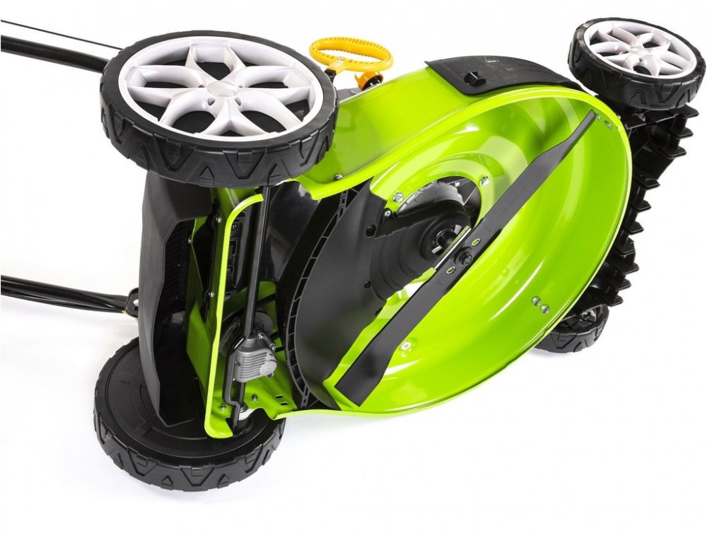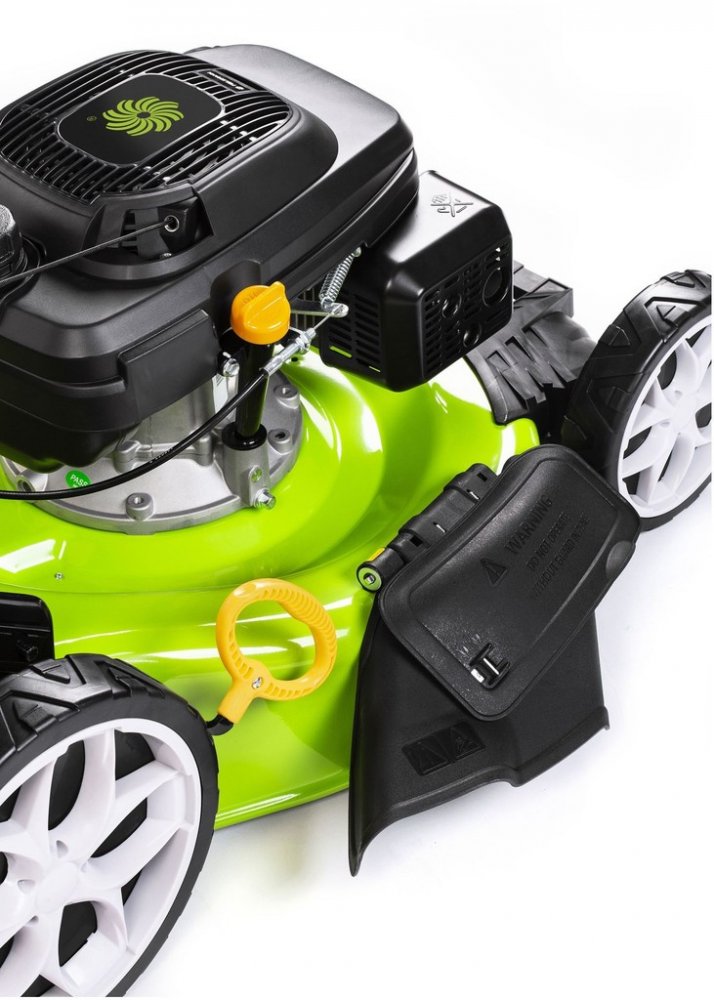 Snadné ovládání motoru i pojezd sekačky pohodlně zajistí dvojice pák přes celou šířku madla. Kola jsou uložena na kuličkových ložiscích. Komfort při práci zajišťuje měkčený potah madla tlumící vibrace. Sekačka je vybavena panelem s přihrádkou na drobnosti. Integrované přední madlo usnadňuje manipulaci se strojem při čištění.