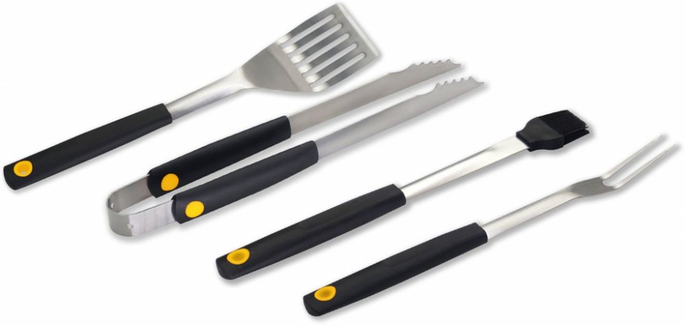 V ucelené sadě FZG 9015 najdete čtyři kusy praktických a vysoce funkčních kusů grilovacího nářadí Fieldmann. Pracovní část nástrojů je vyrobena z nerezu, který náčiní dodává pevnost. Rukojeť každého nástroje je opatřena měkčeným povrchem, takže se pevně a pohodlně drží v ruce, navíc nestudí. Zavěšení umožňuje otvor v rukojeti. Sada obsahuje kleště, obracečku, hned po kleštích nejpoužívanější grilo...