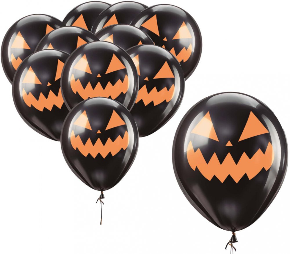 Set latexových balonků Dýně v černé barvě s oranžovým potiskem, velikost balonku 30 cm, v balení 10 ks.