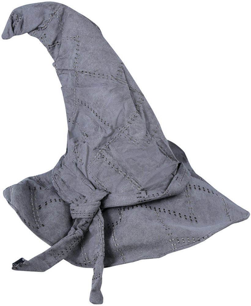 Karneval doplněk - látkový šedivý špičatý klobouk.