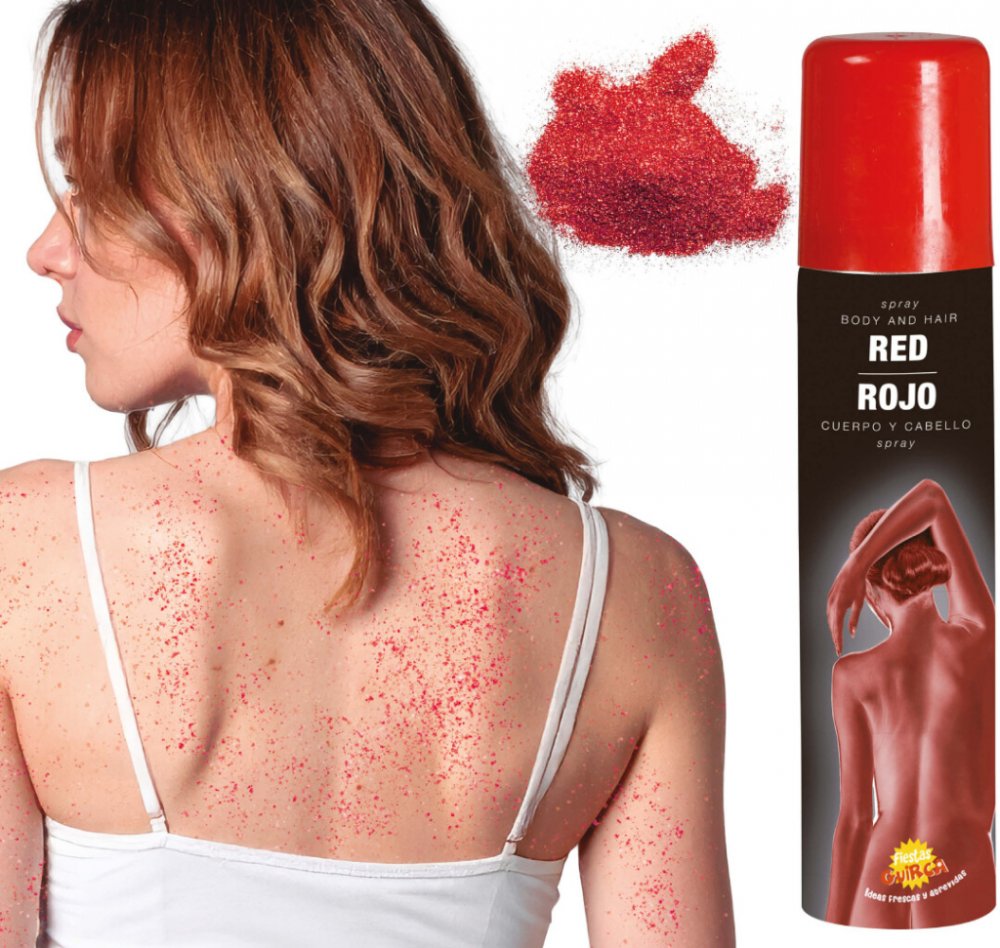 Párty sprej barva na tělo a vlasy červená, obsah 75 ml. Pro větší intenzitu barvy naneste druhou vrstvu, až první zaschne.