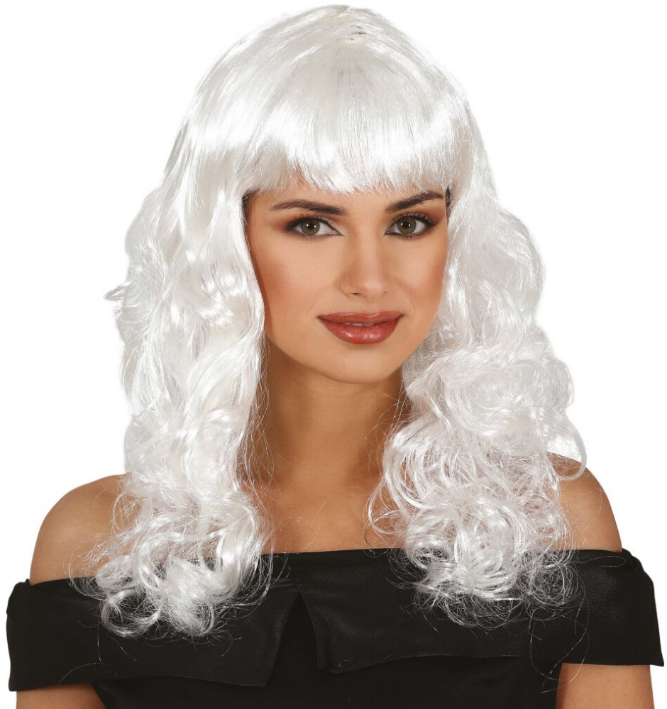 Paruka bílé dlouhé vlnité vlasy s ofinou.