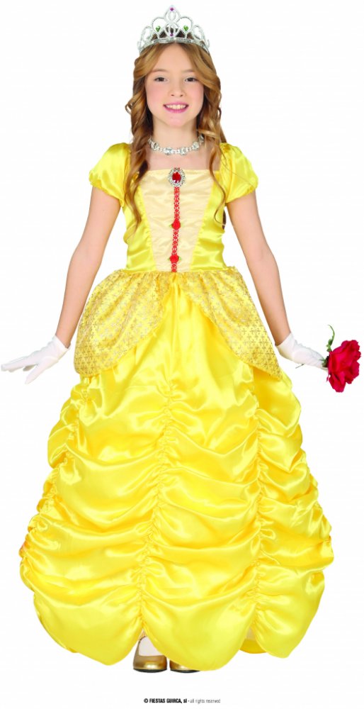 V těchto žlutých šatičkách se z vaší holčičky stane rázem okouzlující malá princezna. Kostým Princess Bella je ideální pro jakýkoli druh dětské party, karnevalu a narozenin. Kostým princezny se skládá z dlouhých krásných žlutých šatiček, které mají velké množství výšivek Velikost : 3-4 roky