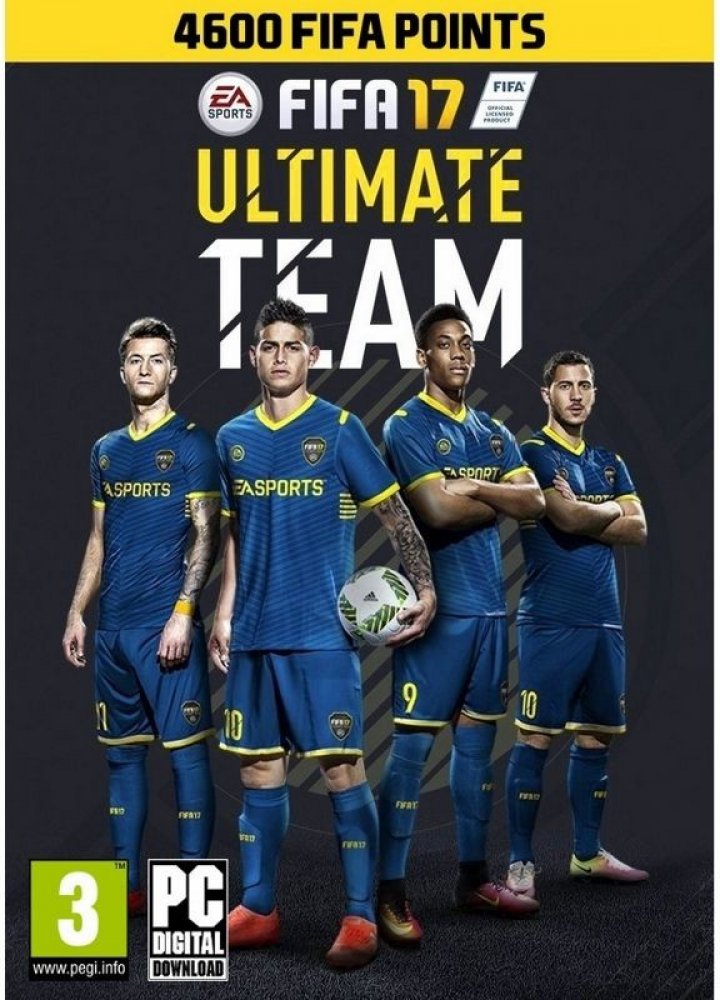 FIFA 17 - 4600 FUT Points Kupon na 4600 FUT (FIFA Ultimate Team) bodů, které lze využít ve hře FIFA 17 pro nákup nových hráčů a dalších herních vylepšení. Kupon je určen pouze pro platformu PC.Co je režim FIFA Ultimate Team (FUT)?EA SPORTS FIFA 17 Ultimate Team je obrovská onlinová komunita hráčů, kteří si budují a řídí vlastní fotbalové týmy nejlepších hráčů světa a soutěží s nimi ve hře FIFA 17. Přidejte se k více než 15 miliónům fandů a přijměte výzvu v podobě vybudování vlastních mužstev složených ze superhvězd světové kopané. Ty můžete prostě jen získávat, ale také kupovat, prodávat či směňovat s dalšími hráči režimu Ultimate Team. Postavte si svůj tým snů a vyzvěte s ním týmy svých přátel kdykoli budete chtít. Vytvořte si vícero různých mužstev a veďte je v soutěžích online či v sólo turnajích pro jednoho hráče. Všechny soutěže se při tom dynamicky aktualizují každý týden.Vybudujte si i Vy svůj vysněný tým!