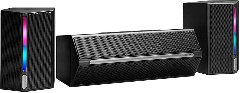 Počítačový reproduktorový systém FIFINE 2.1 se subwooferem, herní reproduktory RGB pro PC, stolní zvukový systém s ovládáním hlasitosti, 3,5 mm AUX a Bluetooth, napájení střídavým proudem - AmpliGame A22