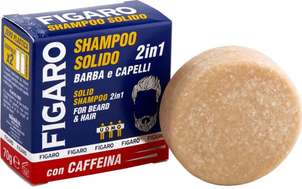 Figaro Uomo tuhý šampon na vlasy a vousy je praktické a efektivní řešení pro každodenní péči o mužský vzhled. Tento pevný šampon 2 v 1, obohacený o kofein a kávový extrakt, jemně čistí vlasy i vousy, aniž by je vysušoval. Je vhodný pro všechny typy vlasů a vousů a skvěle si rozumí i s citlivou pokožkou.
