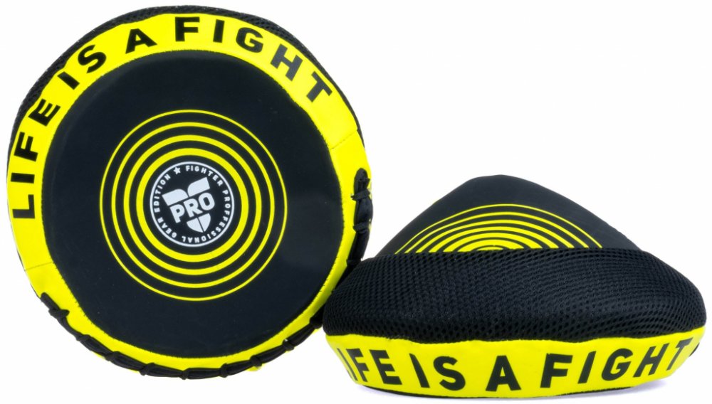 Fighter kulatá lapa Pro Small - černá/neon Pro Fighter Edition je určena především pro profesionální a zkušené zápasníky, kteří hledají kvalitní, ochranyschopné a pohodlné vybavení na tréninky a zápasy. Lapa je vyrobena ze syntetické kůže v zajímavých barvách a s originálním designem. Je vhodná pro trénink úderů, stejně tak, jako k rychlostnímu tréninku. Lapa je lehká a pohodlná jak při úderech, tak i při držení. Vyrobeno ze syntetické kůže Lehká a ergonomická