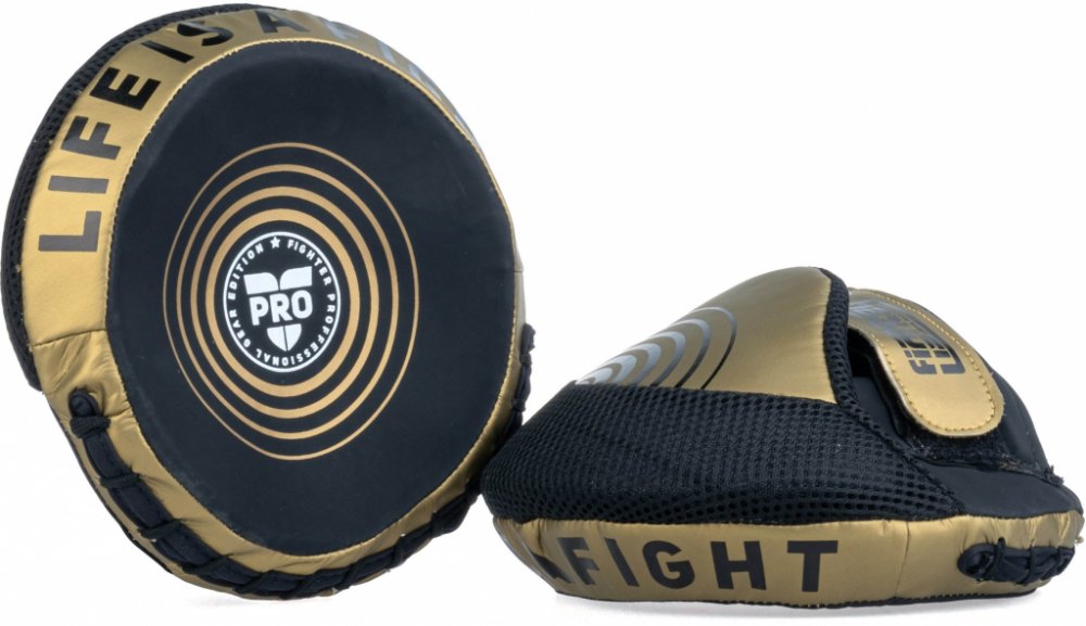 Fighter kulatá lapa Pro Small - černá/neon Pro Fighter Edition je určena především pro profesionální a zkušené zápasníky, kteří hledají kvalitní, ochranyschopné a pohodlné vybavení na tréninky a zápasy. Lapa je vyrobena ze syntetické kůže v zajímavých barvách a s originálním designem. Je vhodná pro trénink úderů, stejně tak, jako k rychlostnímu tréninku. Lapa je lehká a pohodlná jak při úderech, t...