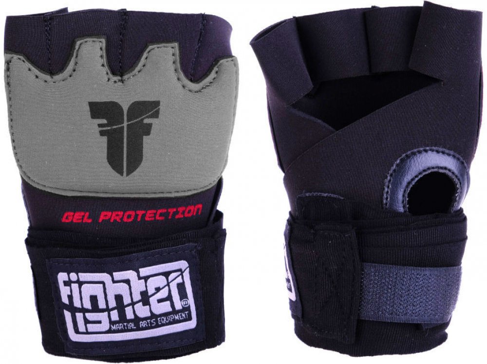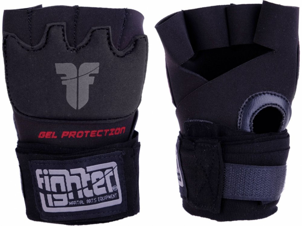 Gelové bandáže Fighter - černá Jsou vyrobeny pro zpěvnění a ochranu ruky a kloubů. Zafixováním prstových kůstek se vaše ruka zpevní a síla úderu je tím rovnoměrně rozložena. Tím zabraníte selektivnímu přetížení a výrazně se sníží poranění šlach, prstů nebo kostí. V místě kloubů je gelová vložka pro maximální absorbci nárazů. Rychlé nasazení bandáží je také velikou výhodou. Určeno pro ty z vás co t...
